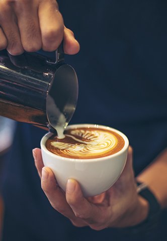 Beautiful latte art designs that add elegance and visual appeal to every cup served.